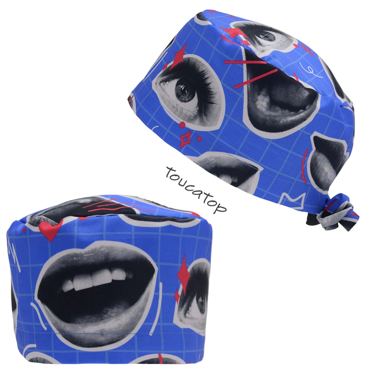 Gorro Cirúrgico, Colagem, Bocas, Olhos, Xadres, Azul