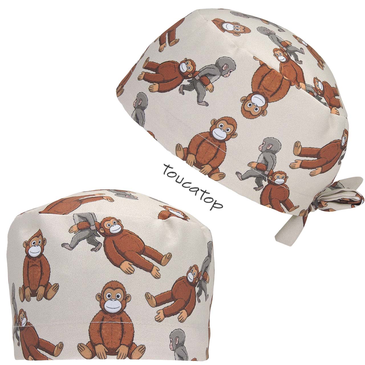 • Gorro Cirúrgico, Punch Monkey, Macaco, Fundo Bege/Marrom/Cinza