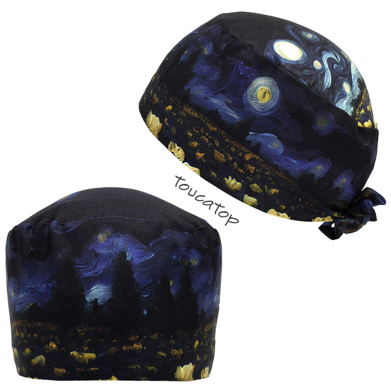Gorro Cirúrgico, Noite Estrelada, Jardim de Flores, Azul