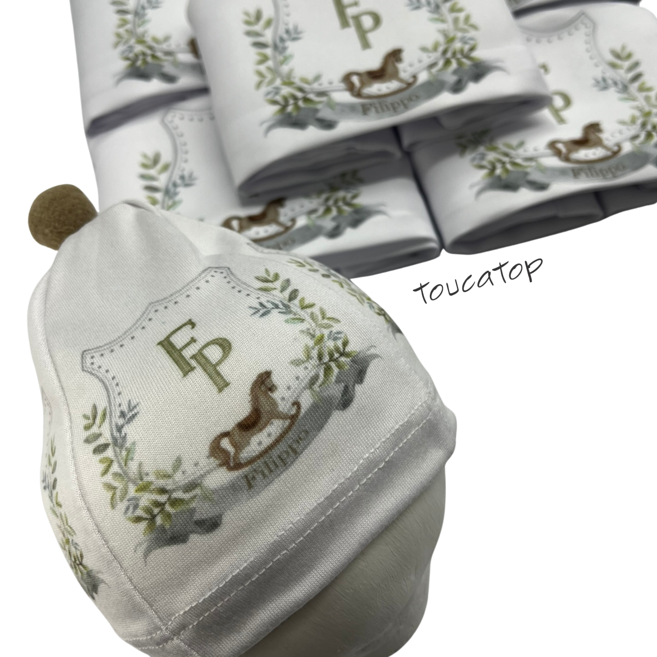 ♦ 1 un Touca para Bebê Recém-Nascido Personalizada e 5 unidades de Gorro Cirúrgico unissex com tiras de amarrar Personalizados.