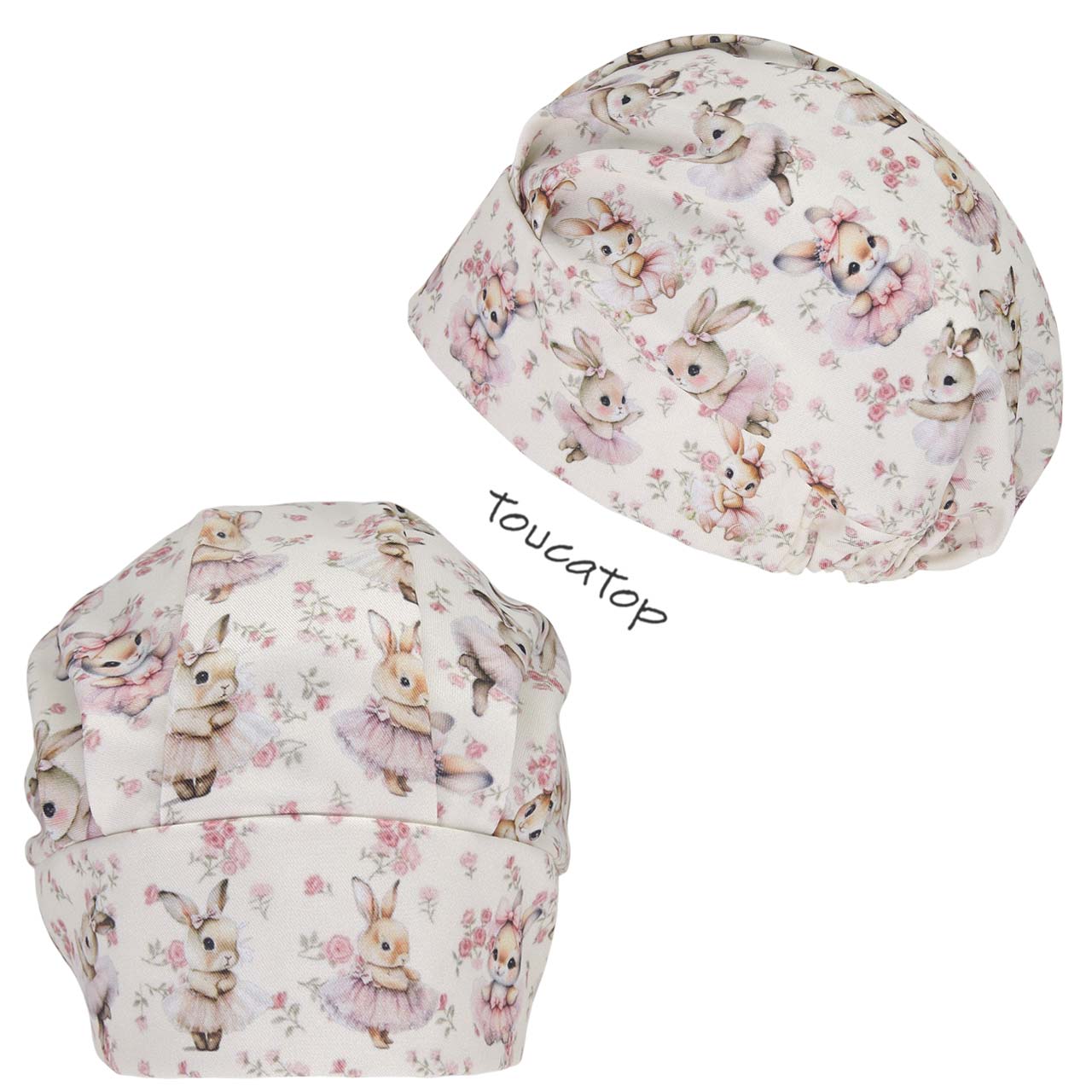 Touca Cirúrgica Feminina, Coelinhas Bailarinas, Flores Rosa, Areia