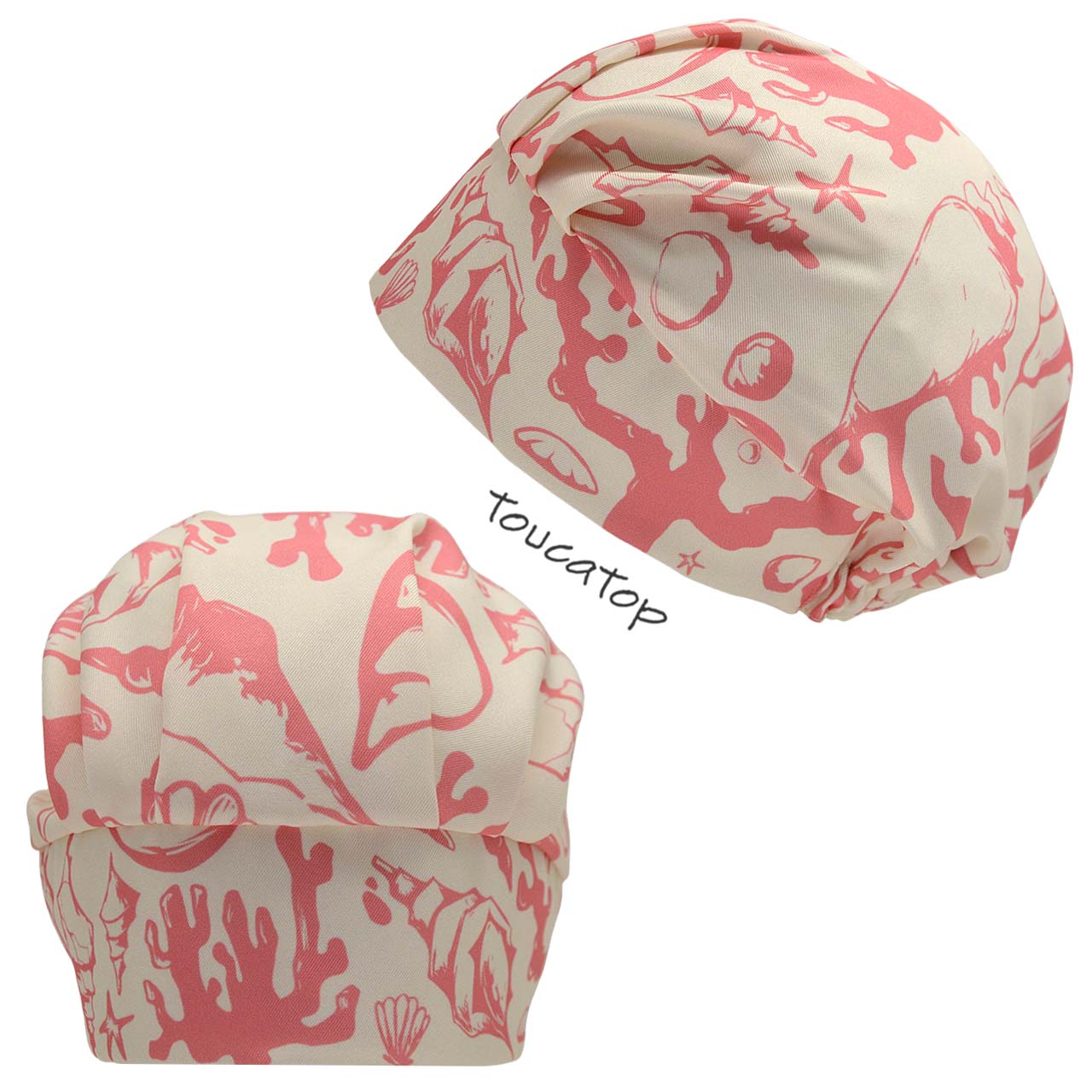 Touca Cirúrgica Feminina, Conchas e Corais traço Salmão, Bege