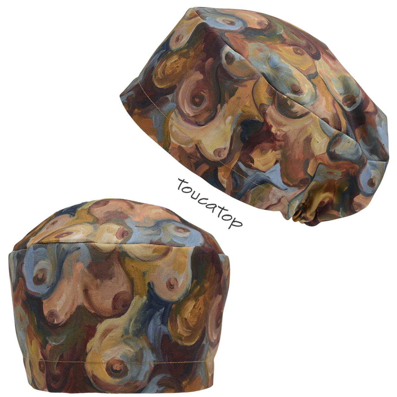 • Touca Feminina ALICE, Arte, Mamas, Pintura Óleo, Fundo Marrom.