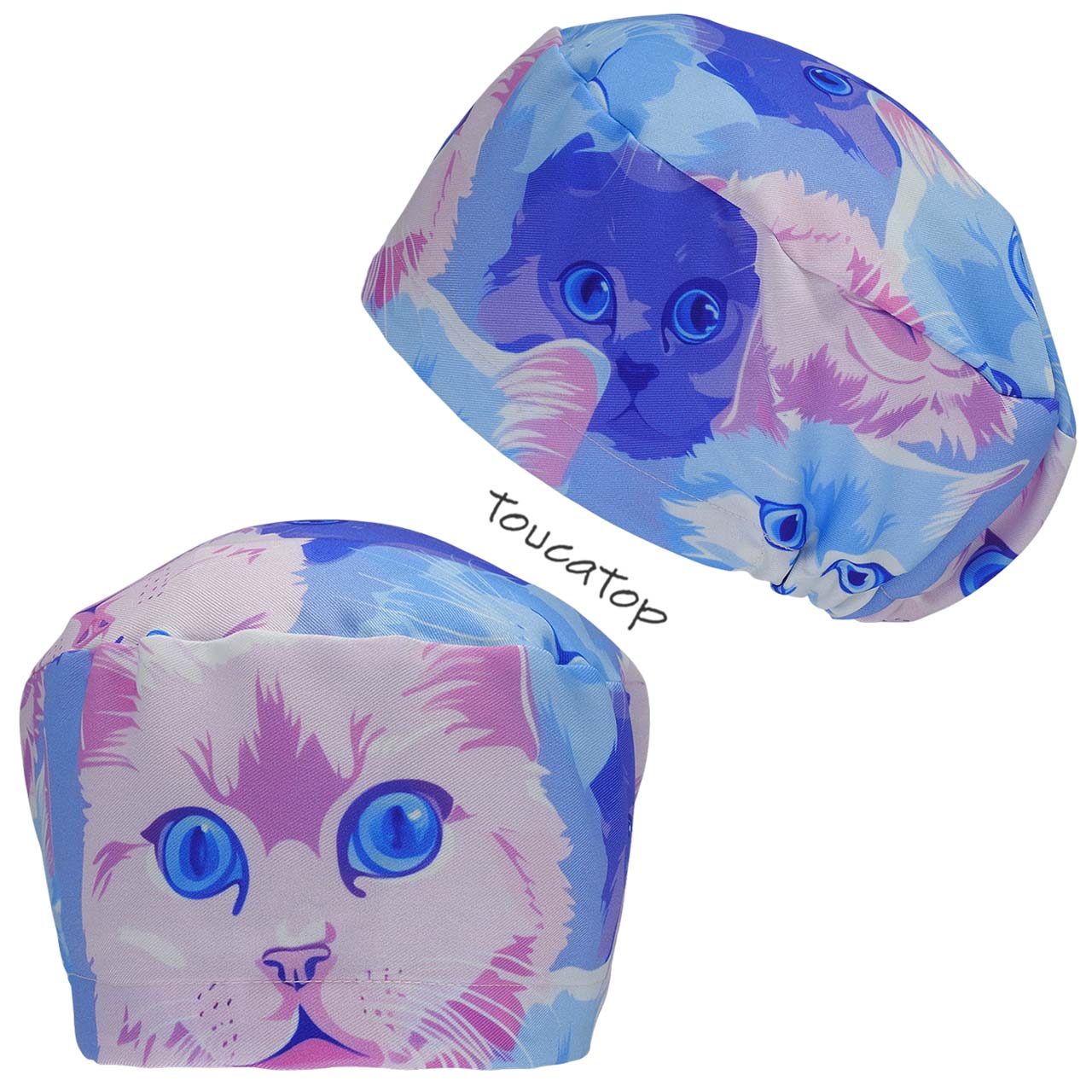 Touca Feminina ALICE, Carinhas de Gatinhos, Rosa, Azul, Lilás