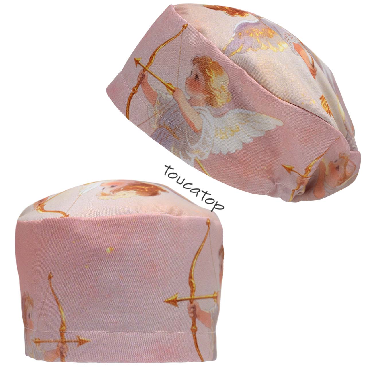 • Touca Feminina ALICE, Cupido, Anjos, Arco e Flecha Dourado, Fundo Rosa.