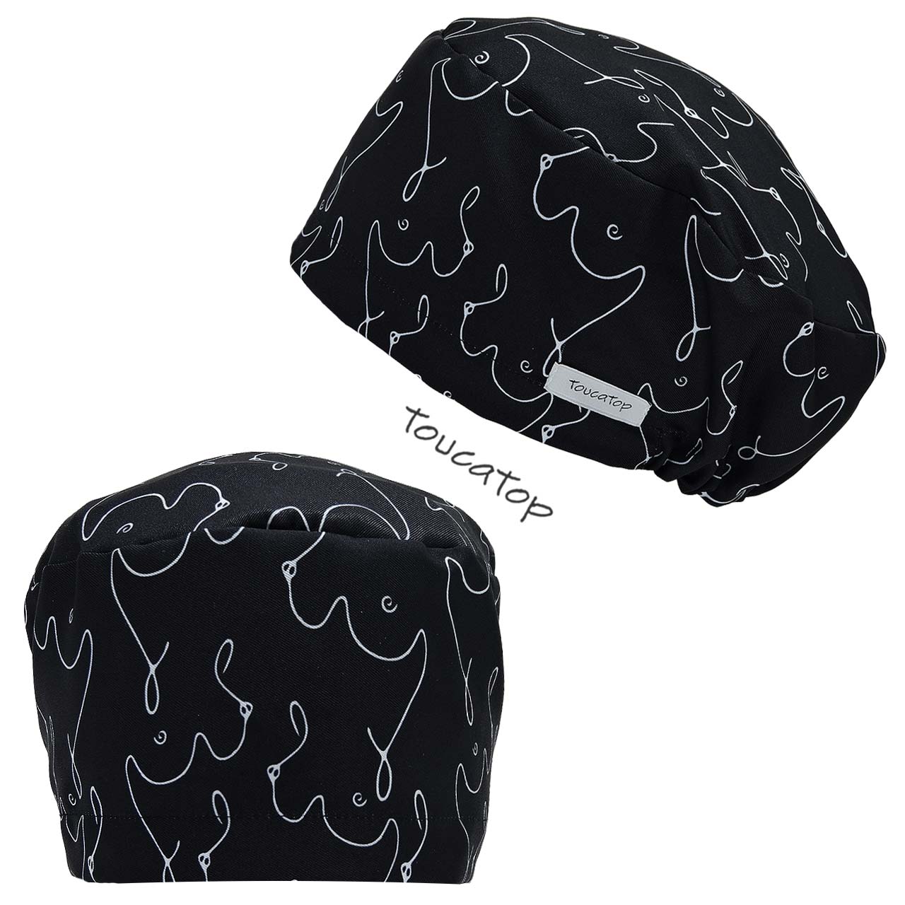 • Touca Feminina ALICE, Seios e Mamas Estilizados, traço branco, Fundo Preto.